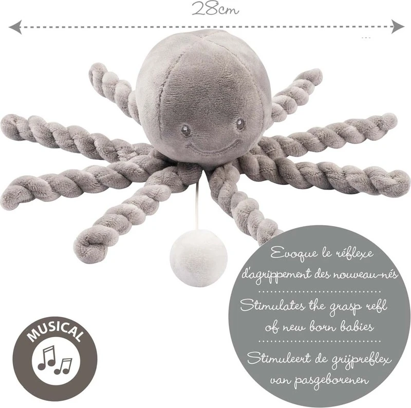 Das erste Spielzeug Ihres Babys, das Octopus PIU PIU Natta aus der Lapidou- Kollektion spielt. Dieser Oktopus wird der erste echte Freund Ihres Babys, der es beruhigt, ihm ein Gefühl von Sicherheit und Komfort gibt. Octopus ist ein passender Freund für Ihr Baby von Geburt an und wird es als treuer Begleiter und Freund durch seine Kindheit begleiten.